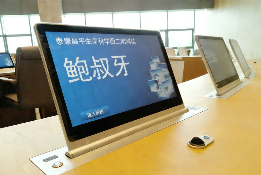本案例为泰康商学院打造一体化无纸化会议解决方案,集成电容升降屏、专业会议扩声、智能会议追踪等核心功能,全面替代传统纸质会议模式,实现会议全流程数字化、智能化升级,适配商学院日常教学研讨、会议办公等多元场景。
