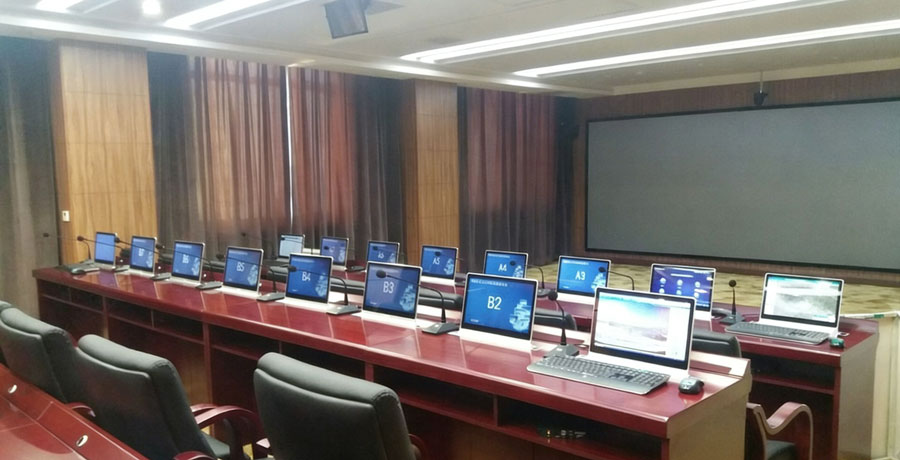 - 部署会议管理服务器、升降式终端、投屏主机、中控系统,实现多会议室统一管控、信号互联互通、设备集中管理。