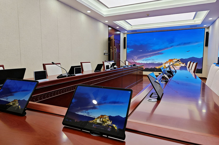 无纸化会议系统 + 大屏显示 + 专业音扩声一体化方案,打造高效、整洁、安全的现代会议环境。
