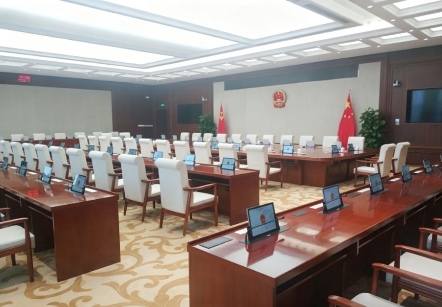 该政府机关日常会议频次高、参会人数多,传统纸质会议模式存在筹备效率低、耗材成本高、信息安全管控难等问题,同时原有会议设备老旧,无法满足现代化政务会议高效、保密、规范的使用需求,亟需一套稳定可靠的智能无纸化会议解决方案。